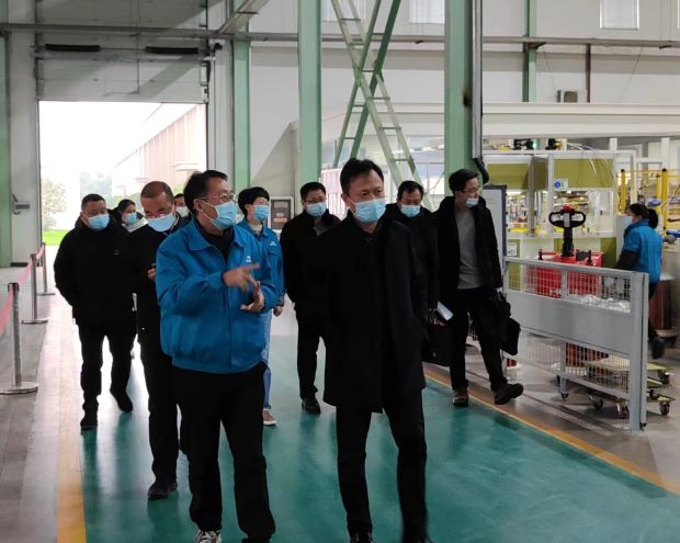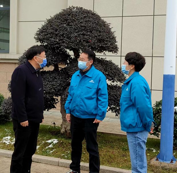 ▲圖為涇縣縣委書記施懷中來公司調(diào)研疫情防控及復工復產(chǎn)情況