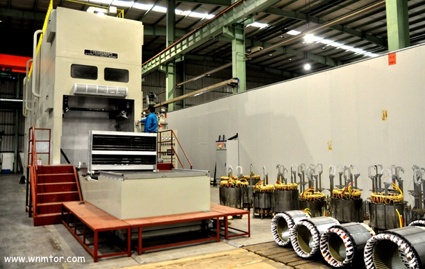 皖南電機(jī)控股威能電機(jī)公司自動(dòng)真空連續(xù)浸漆機(jī)正式投入使用,該設(shè)備主要用于中心高H315-355電機(jī)有繞組定子的絕緣處理。