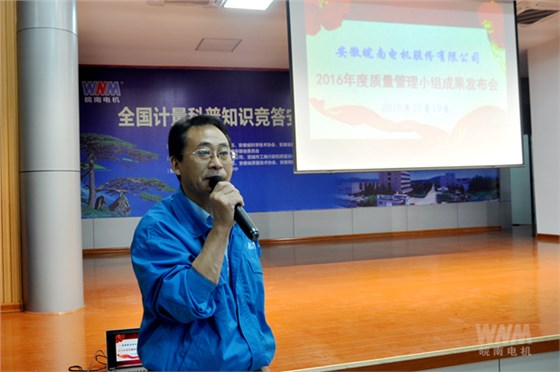 10月19日下午,由皖南電機(jī)工會和質(zhì)量與企業(yè)管理部聯(lián)合舉辦的2016年度質(zhì)量管理小組成果發(fā)布會在公司大禮堂召開。經(jīng)過質(zhì)管部對各部門上交的QC成果與信組進(jìn)行篩選,來自股份公司、威能公司、同華公司等生產(chǎn)單位的4項QC成果與5項爭創(chuàng)質(zhì)量信得過班組成果在會上進(jìn)行了交流發(fā)布。皖南電機(jī)副董事長管兵,總經(jīng)理陳學(xué)鋒,副總經(jīng)理許權(quán)、許鋒、孫躍、李超等公司高層擔(dān)任此次成果發(fā)布的評委,董事長陳根喜也全程觀看了發(fā)布。